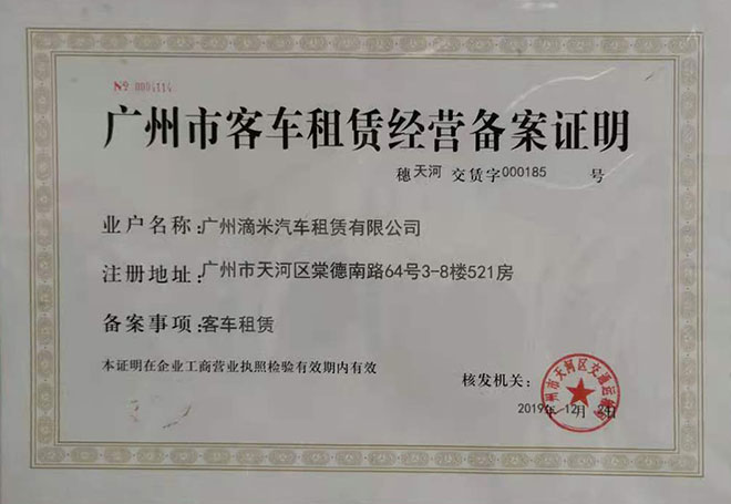 • 廣州市客車租賃經(jīng)營備案證明